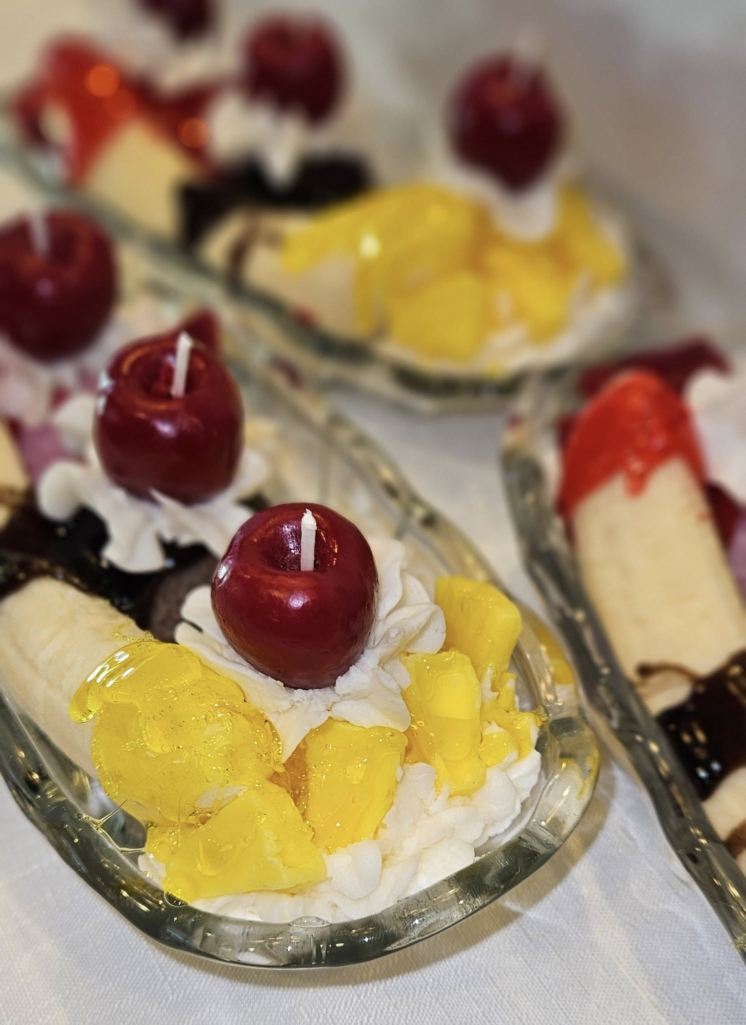 Indulge in our handcrafted Banana Split candle. The 9 oz candle features a delicious blend of cherry, whipped vanilla, chocolate, strawberry, and pineapple scents, with a lingering hint of banana. Perfect for creating a sweet and inviting atmosphere. Get ready to experience an ultimate experience with our Banana Splits!