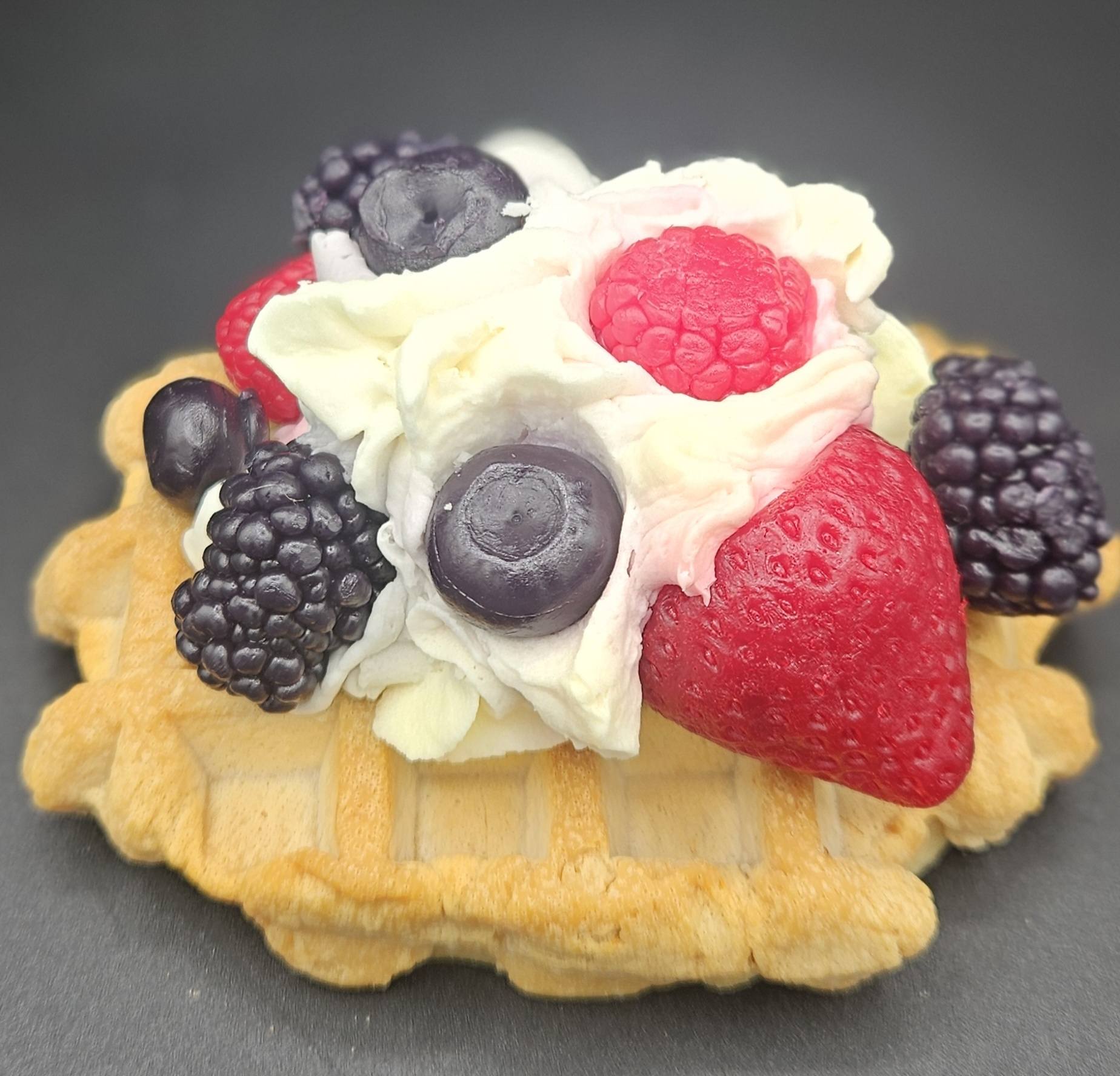 Experience the Belgium Waffle wax melt, hand crafted to captivate with its fresh, handmade fruits and fragrances and a fluffy whipped scent of vanilla that captures the essence of a perfectly made golden waffle. This warm, inviting aroma transforms your space into a cozy retreat, tempting you to enjoy its sweet comfort again and again.