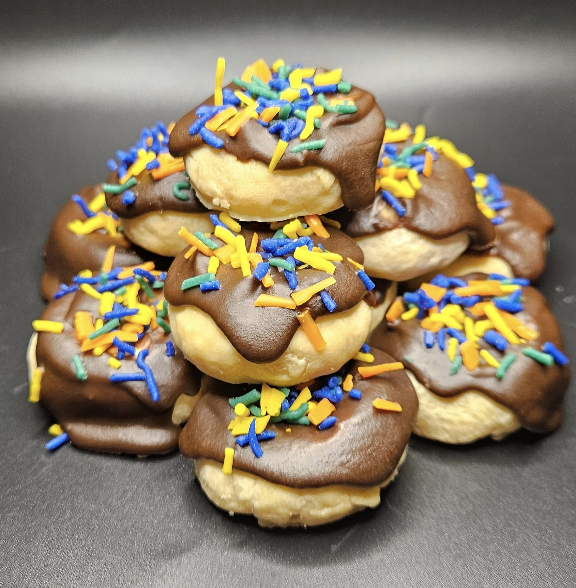 Chocolate Covered Donuts with Sprinkles Tarts