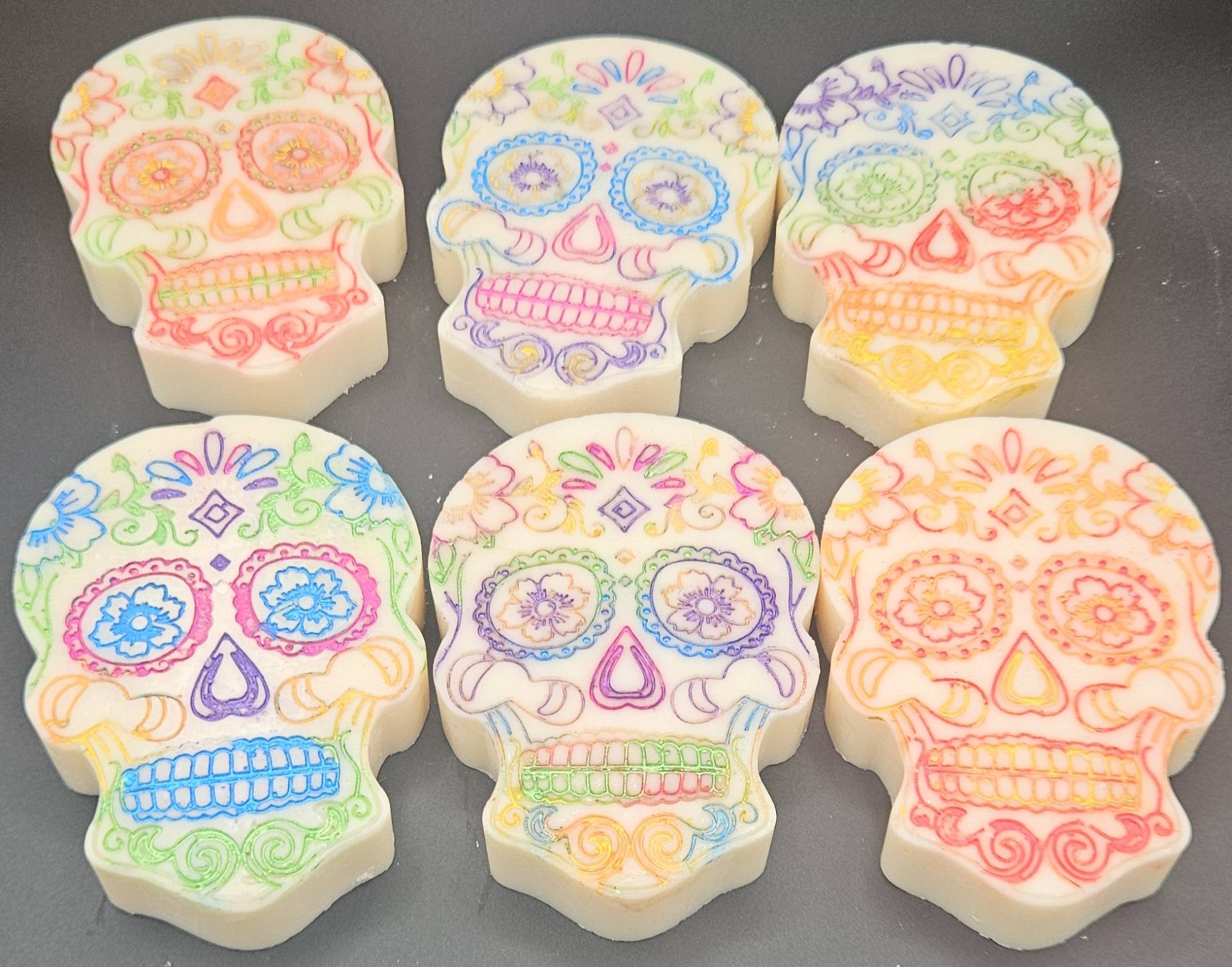 These adorable Sugar Skulls are so perfect for the Sugar Skull Lovers out there. You know who you are! These Sugar Skulls aren't messing around when it comes to scenting your home with another 2024 top scent of Banana Nut Bread! They are sweet and colorful just the way a Sugar Skull should be!